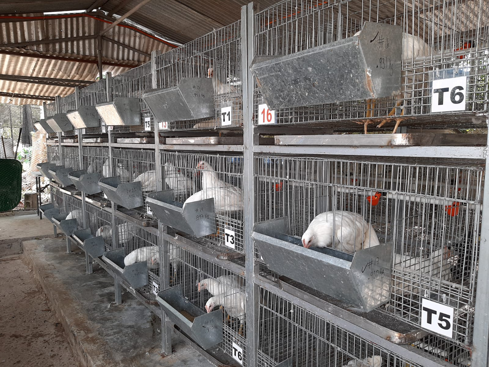 Exclusively for poultry digestibility tests, we have 84 cages with the following dimensions: 40 cm wide by 45 cm deep and 40 cm high, to house 4 adult birds. We have 42 cages with stainless steel trays that make it easier to collect excrement.